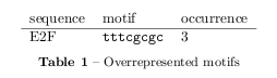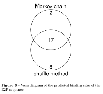 Finally, overrepresented motifs have been extracted from the sequences if they are longer than 5 bases. This respects the length of the placed motifs and most TFBS in general. For the discussed E2F-sequence the following motif has been predicted: