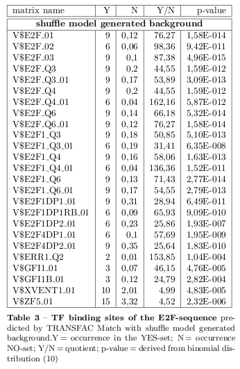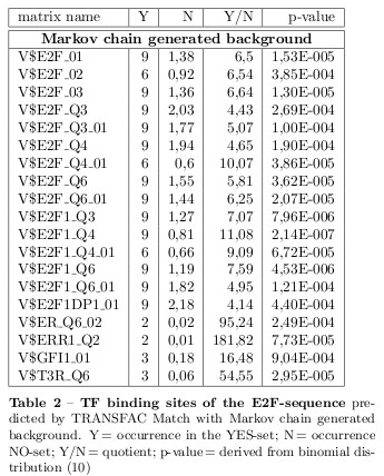 have been selected as final predictions and are presented for the E2F-sequence in tables 2 and 3.