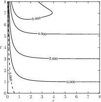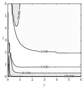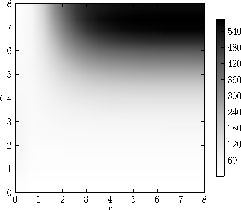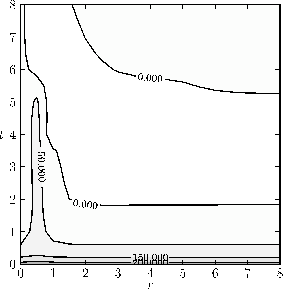 Corresponding to this derivation the contour plot in Figure 1c shows the values of \( A-(1+q_{min}\exp(AD))/D \) with values \( \leq 0 \) the product being increasing with signal strength \( r \).