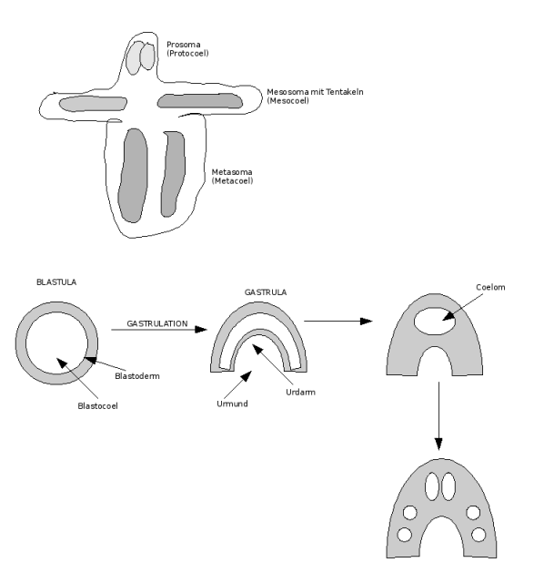 Axocoel (≙Proto~), Hydrocoel (≙Meso~), Somatocoel (≙Meta~)