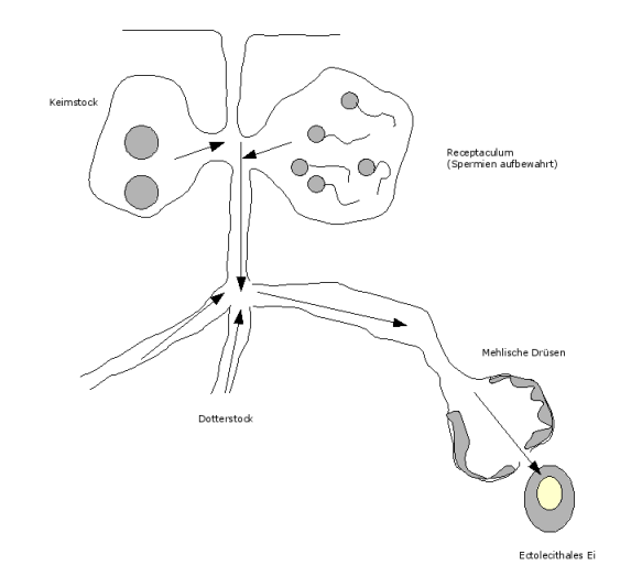 Eierstock in Keimstock und Dotterstock unterteilt -> zusammengesetzte Eier (=ectolecithale Eibildung)