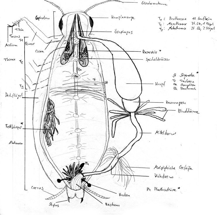 Cornea: = cuticuläre Linse, welche Teil der Chitinhülle ist; sie wird von 2 Zellen sezerniert; Cornea besteht aus Corneagenzellen (Hauptpigmentzellen); fungiert als lichtsammelnder Apparat