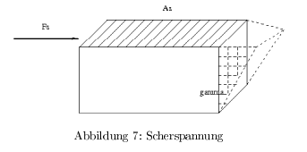 Das Schermodul ist: \[ G = \frac{\tau}{\gamma} \tau =\frac{F_S}{A_S} \] ( \( \gamma = \) Scherwinkel)