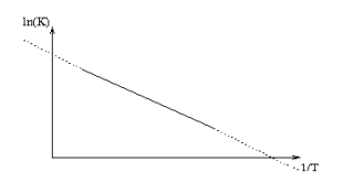 \begin{eqnarray*} \ln{K} &=& - \frac{\Delta H_0}{R}*\frac{1}{T} + \frac{\Delta S_0}{R} \\ y &=& m x + n \\ y &=& \ln{K} \\ m &=& - \frac{\Delta H_0}{R} \\ x &=& \frac{1}{T} \\ n &=& \frac{\Delta S_0}{R} \end{eqnarray*}