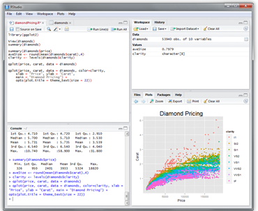 R ist eine Programmiersprache speziell für Datenanalyse und Grafiken. Aus diesem Grund stehen mächtige Funktionen bereits fertig implementiert zur Verfügung. Und das ist der riesige Vorteil einer Programmiersprache: man muss sich nicht in Menüs rumschlagen und ist nicht darauf beschränkt, was in einem Programm als Funktion vorgesehen ist. Besonders bei sich wiederholenden Abläufen ist eine Programmiersprache einfach um einiges schneller. Man muss dabei auch nicht die komplette Sprache lernen, weil es ausreicht, sich die Befehle einzuprägen, die man häufig benötigt und lernt, wo man Hilfe bekommt, falls man vor neuen Herausforderungen steht.